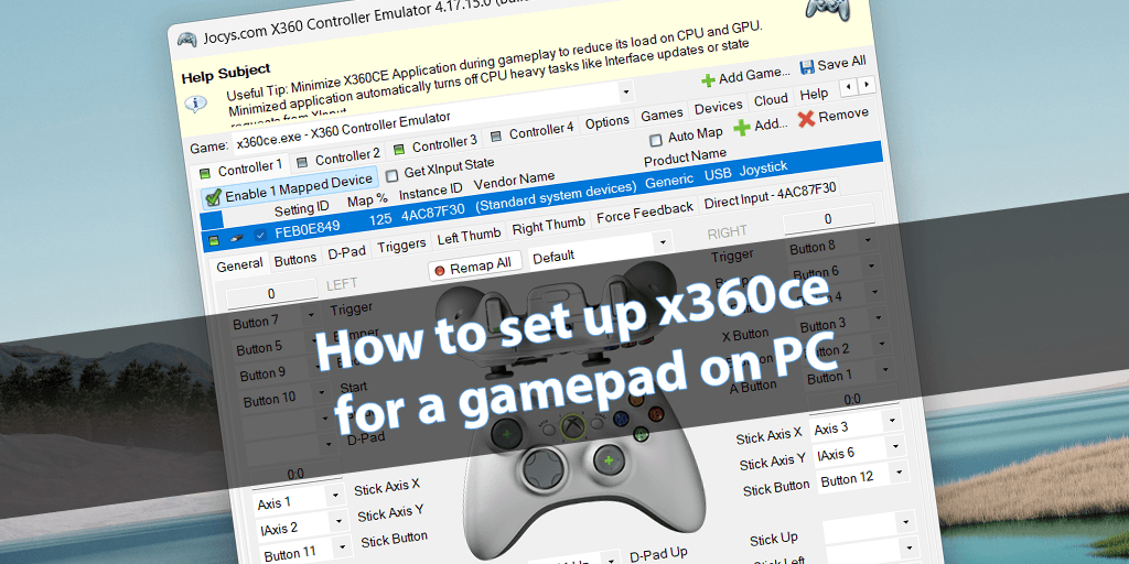 We’ll use x360ce to emulate any gamepad as a classic Xbox 360 controller.